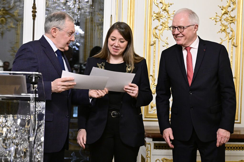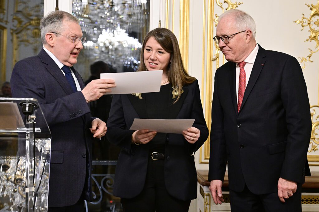 Le Prix de Thèse France-Amériques 2026 a été remis par M. Philippe Bas, membre du Conseil constitutionnel, ancien ministre et ancien président de la Commission des lois du Sénat, à Mme Camille Righetti, Docteur en Droit public, Université de Toulon, pour sa thèse Les commissions d’enquête parlementaire. Étude comparée des expériences américaine, française et italienne.
