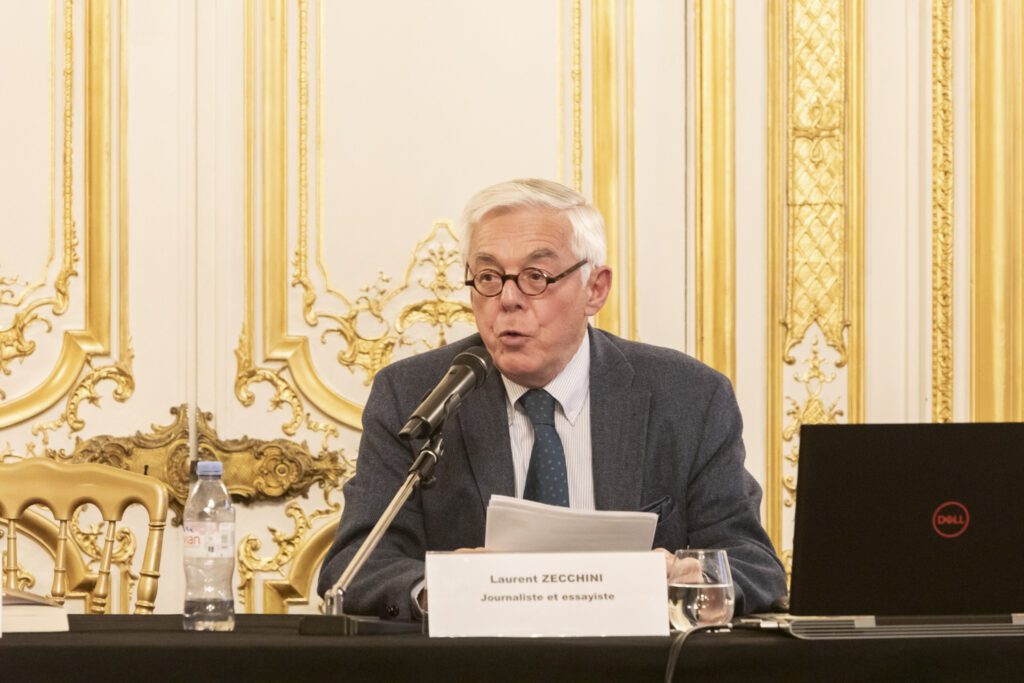 Journaliste pendant plus de quarante ans, dont trente-cinq ans au journal Le Monde, où il a notamment été spécialiste des questions diplomatiques et de défense, Laurent Zecchini a été correspondant dans de nombreuses capitales (New Delhi, Londres, Washington, Bruxelles, Jérusalem), avant de publier une biographie de Lafayette, et maintenant celle de Thomas Jefferson